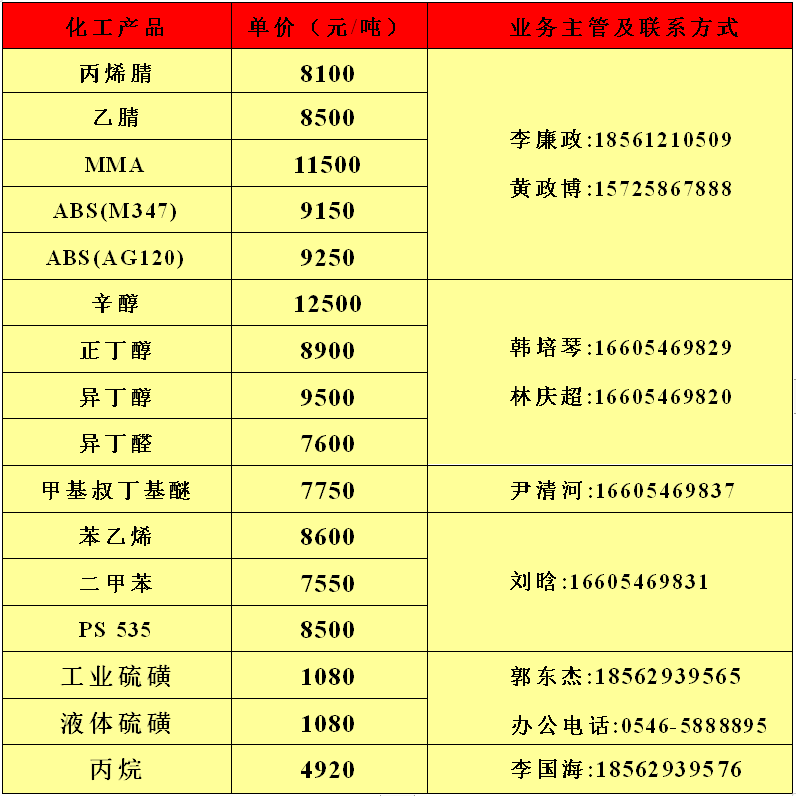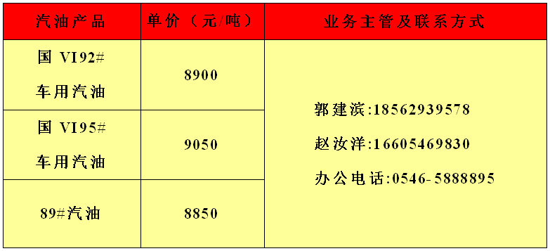 利华益利津炼化有限公司8月24日产品报价