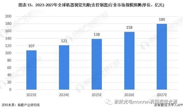 从机器视觉光源(含控制器)的市场规模发展趋势来看,预计至2027年全球机器视觉光源(含控制器)市场规模将达到180亿元。