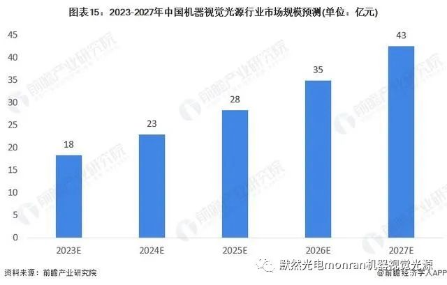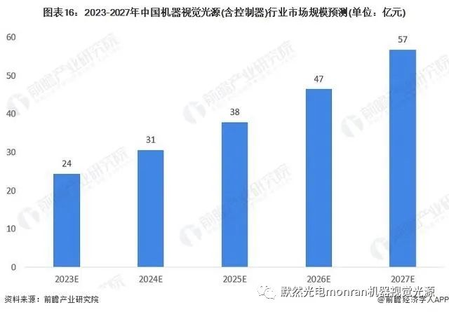 预计2027年中国机器视觉光源(含控制器)市场规模将达到57亿元。