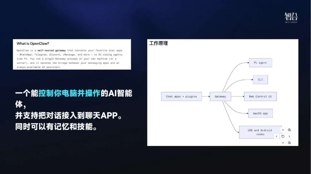 具备记忆和技能,可接入飞书、钉钉等办公软件,实现远程指令执行(如:发送文件、管理日程)。