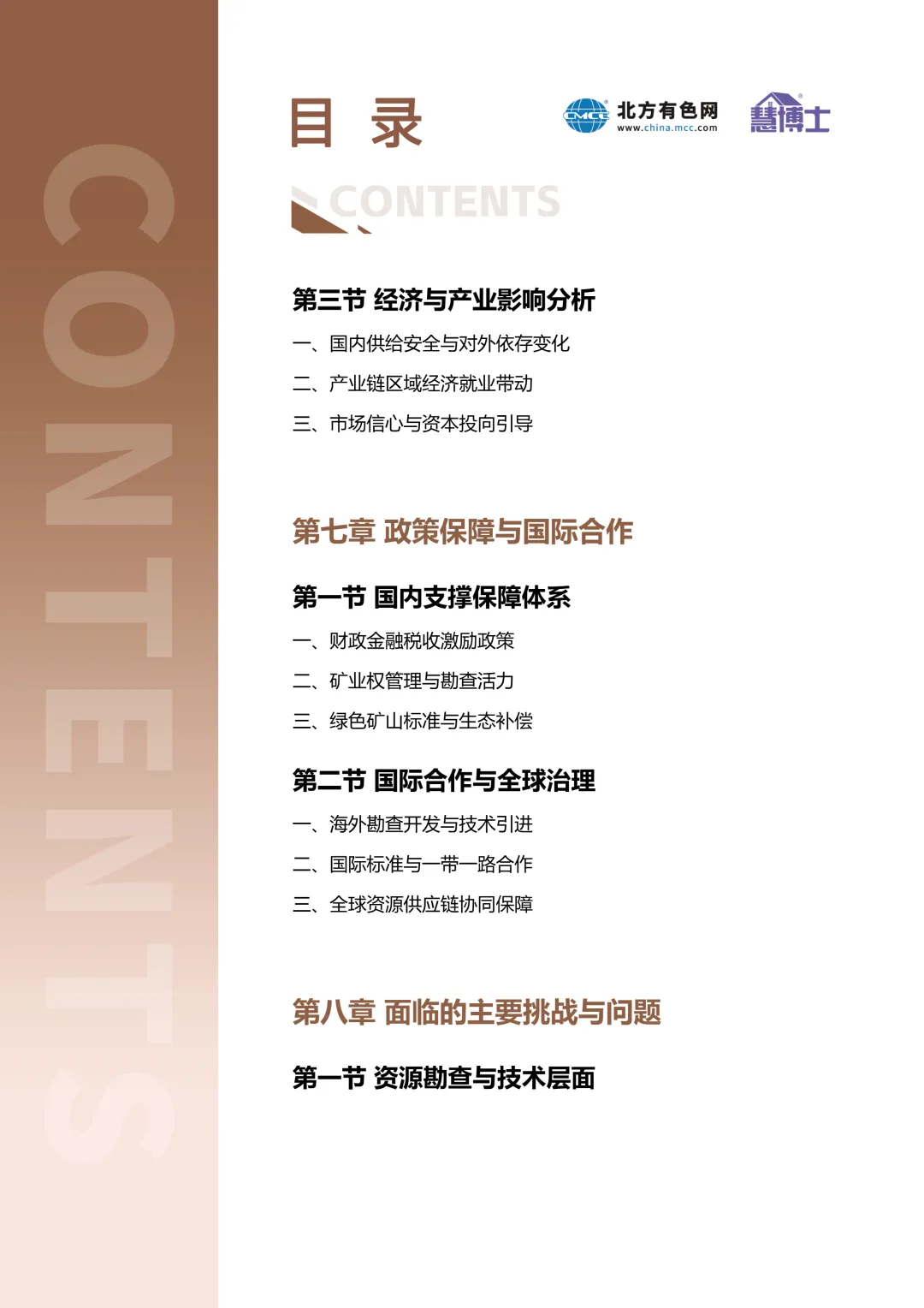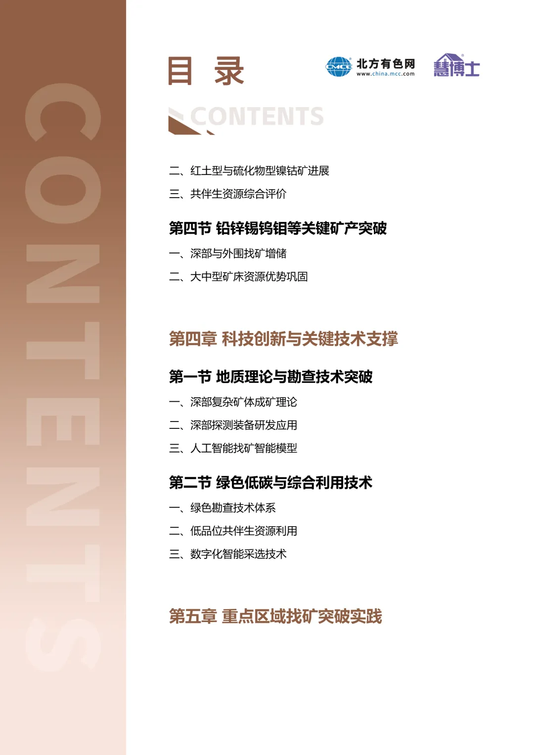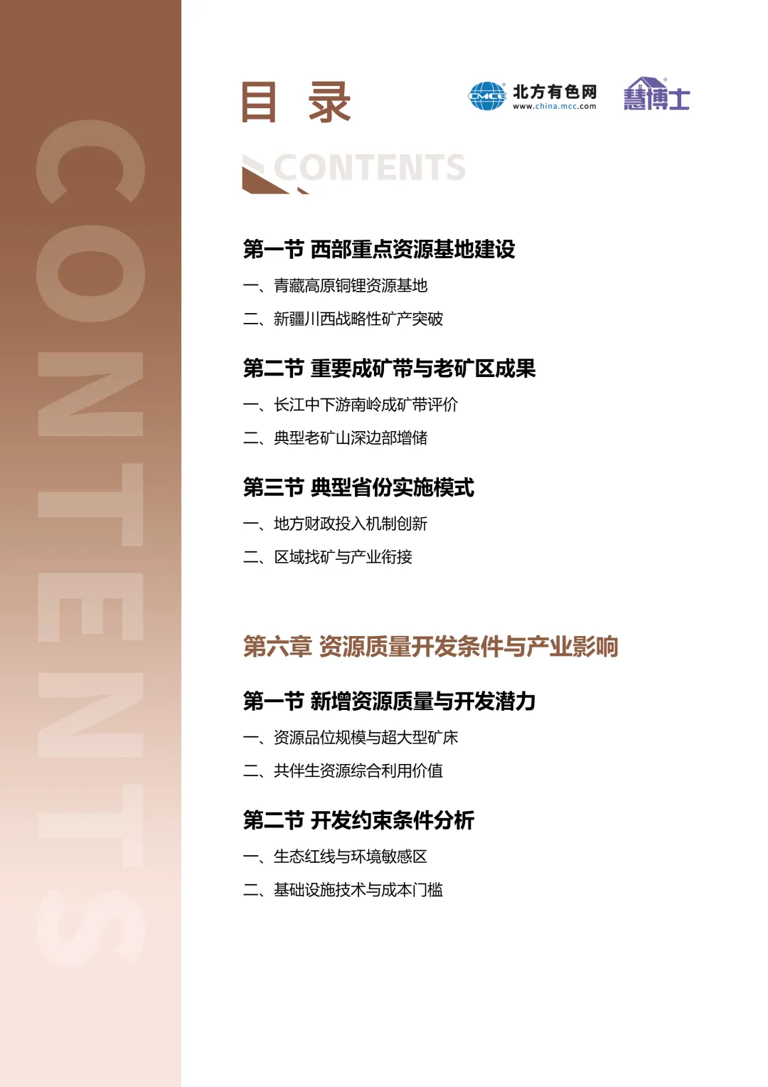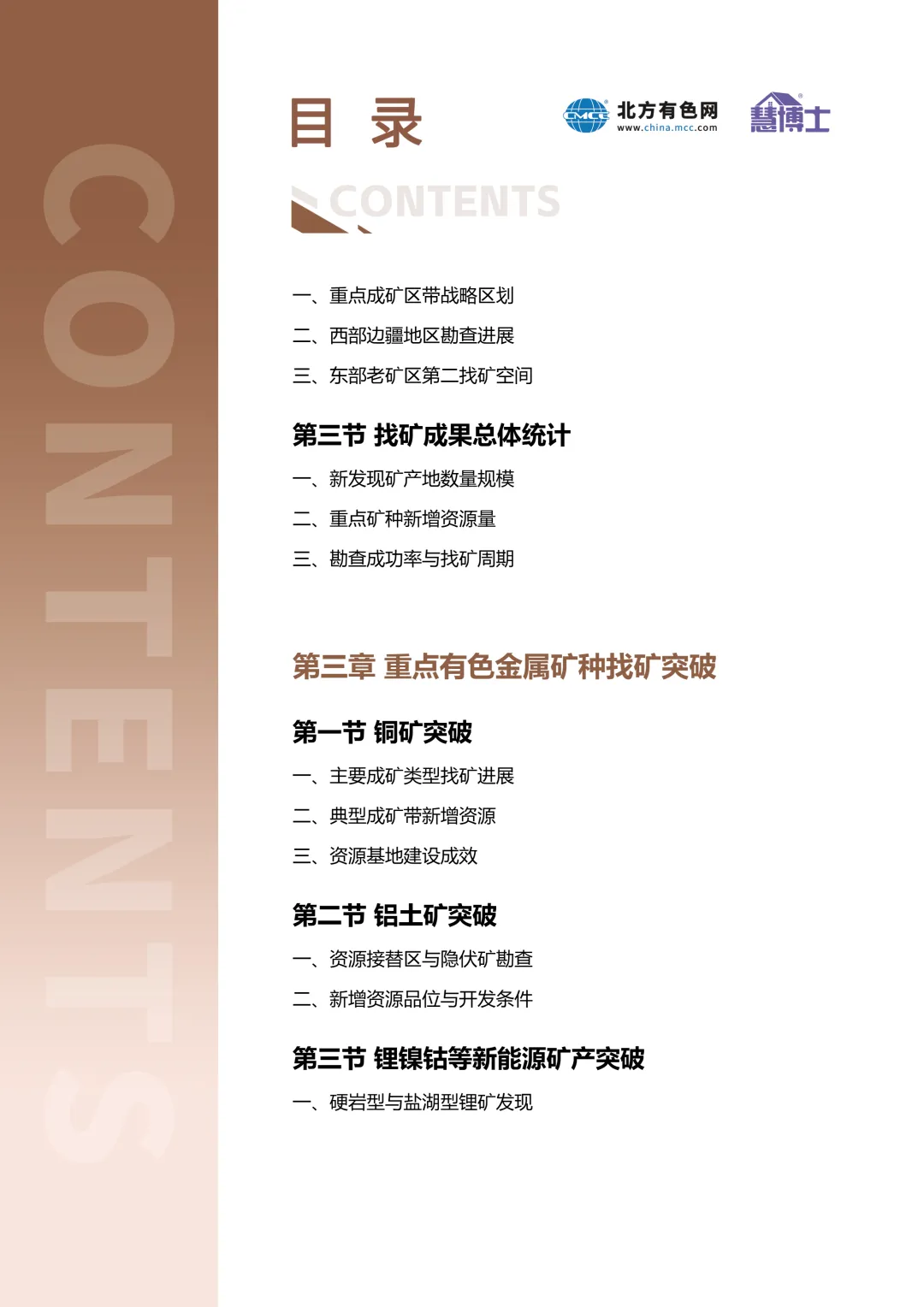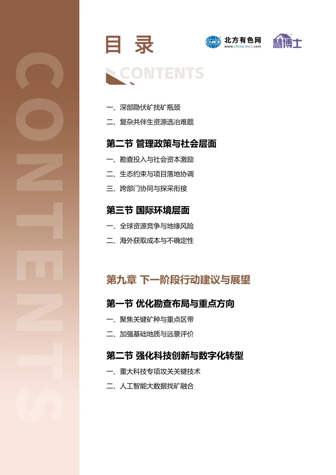 本报告力求全面、客观、翔实,是了解我国当前有色金属矿产资源勘查开发现状、把握未来发展趋势的重要文献,可为政府部门、行业机构、地勘单位、矿业企业及研究人员提供有益借鉴。