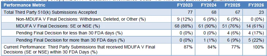 *资料来源:FDA《FDA 510(k) Third Party Performance Report FY26, Q1》