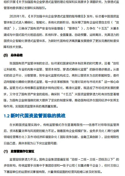 2026 年 1 月《中央企业穿透式监管指导意见》落地;