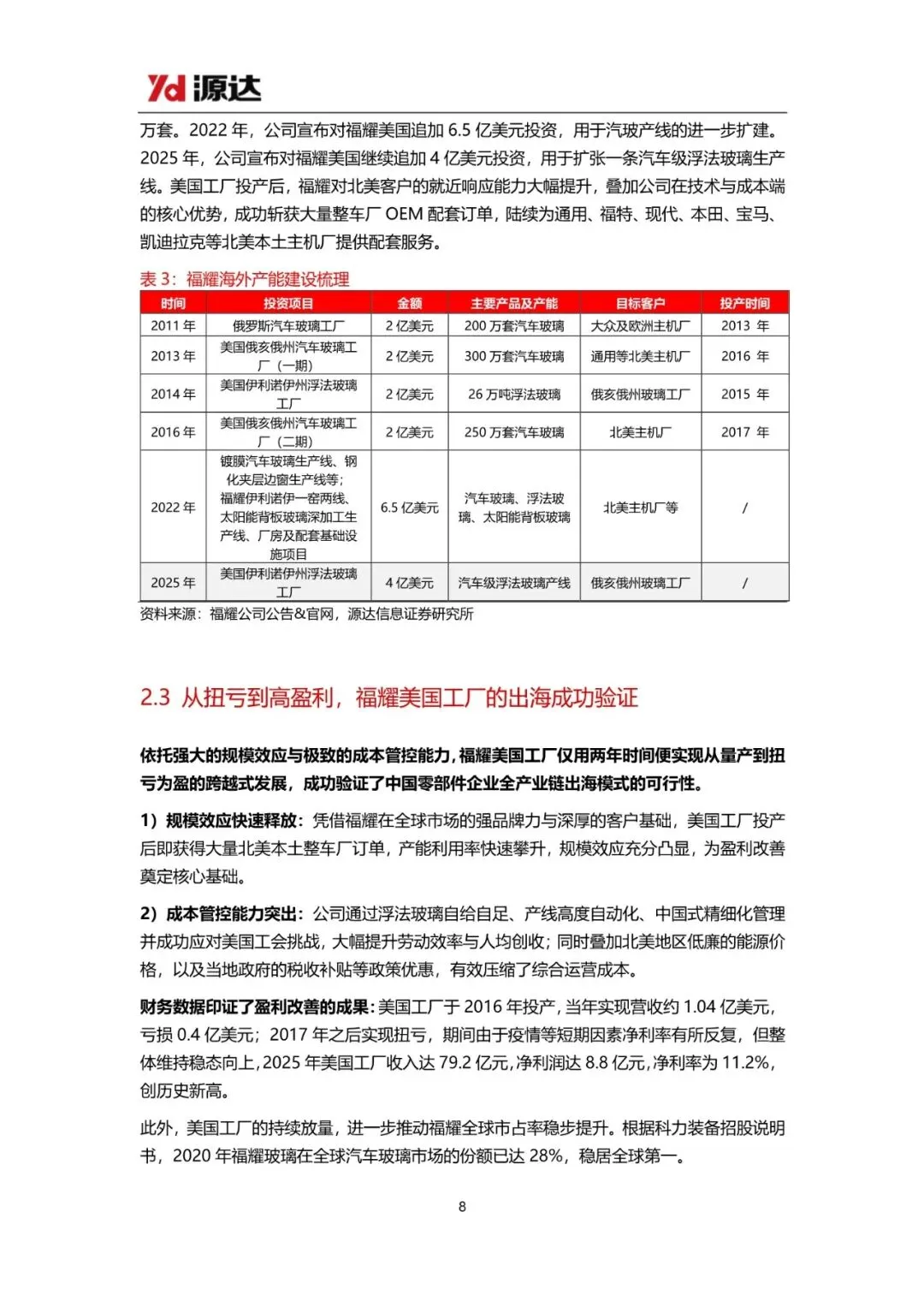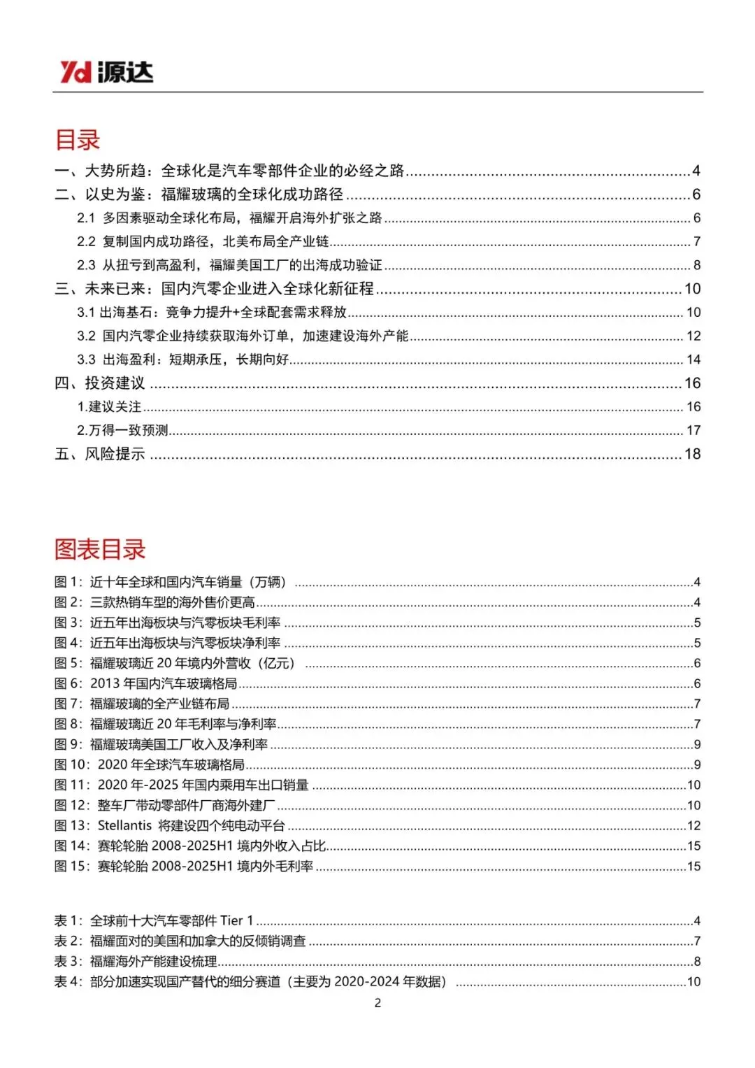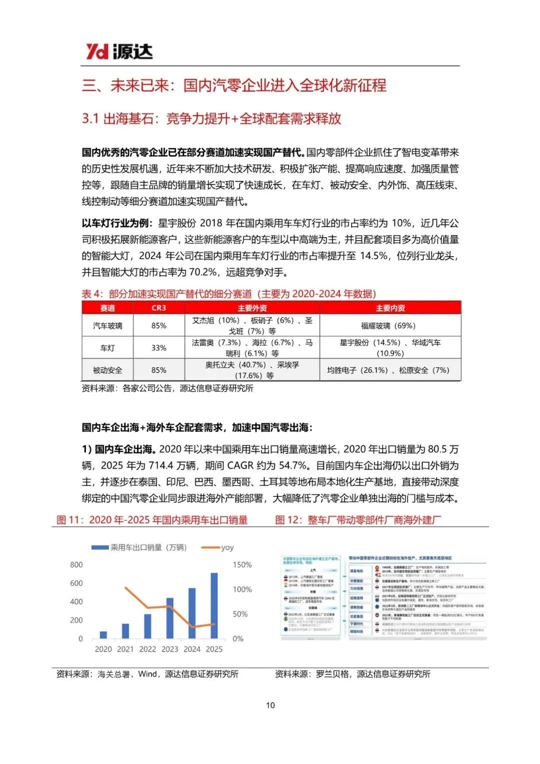 智电变革下,中国汽车产业迎来历史性的发展机遇,在多个细分赛道上加速实现国产替代,但想要迈向更高阶的成长,全球化是必然选择。海外市场空间更广阔、竞争格局与经营环境更优,借鉴福耀玻璃的成功经验,中国有望涌现一批具备全球竞争力的汽车零部件龙头企业。