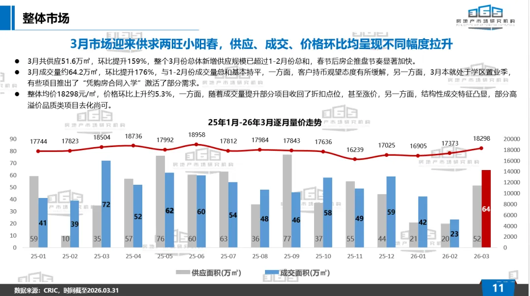 26年3月供应51.6万㎡,环比提升159%,春节后各项目推盘节奏加快;