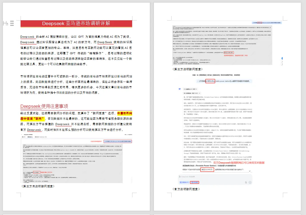 本文件深度剖析了AI驱动的亚马逊市场调研新范式,为出海企业提供了从传统数据滞后分析向实时联网智能洞察转型的实战路径。文件指出,随着Deepseek等具备知识蒸馏与联网能力的AI模型崛起,跨境卖家可通过透明化思考过程与动态数据抓取,实现比GPT更精准、可验证的市场决策支持,尤其在选品、竞品拆解与风险预判环节大幅提升效率与准确性。