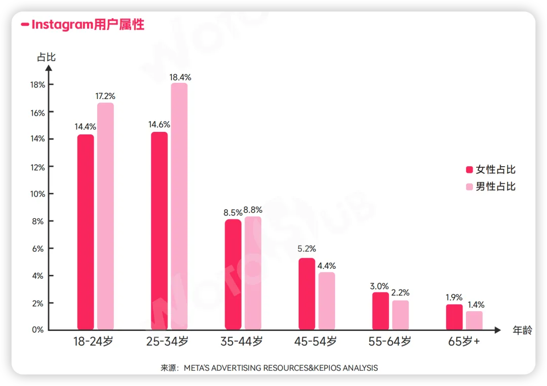 月活17.4亿,以视觉化内容为核心,18-34 岁年轻用户占比64.6%,高互动率与电商整合度双高,Reels 短视频与购物功能打通消费链路,是美妆、时尚、生活方式类品牌的首选阵地。