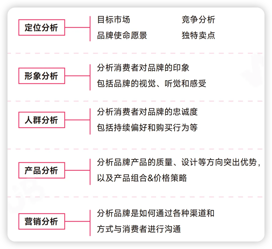 从定位、形象、人群、产品、营销五大维度,分析竞品红人合作模式、内容方向、投放节奏,借鉴成功经验,打造差异化竞争优势。