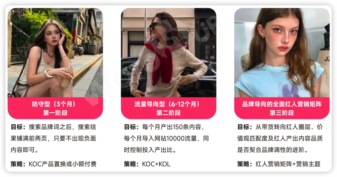 白皮书4.0还将中小品牌的海外红人营销发展划分为三大阶段,匹配差异化策略: