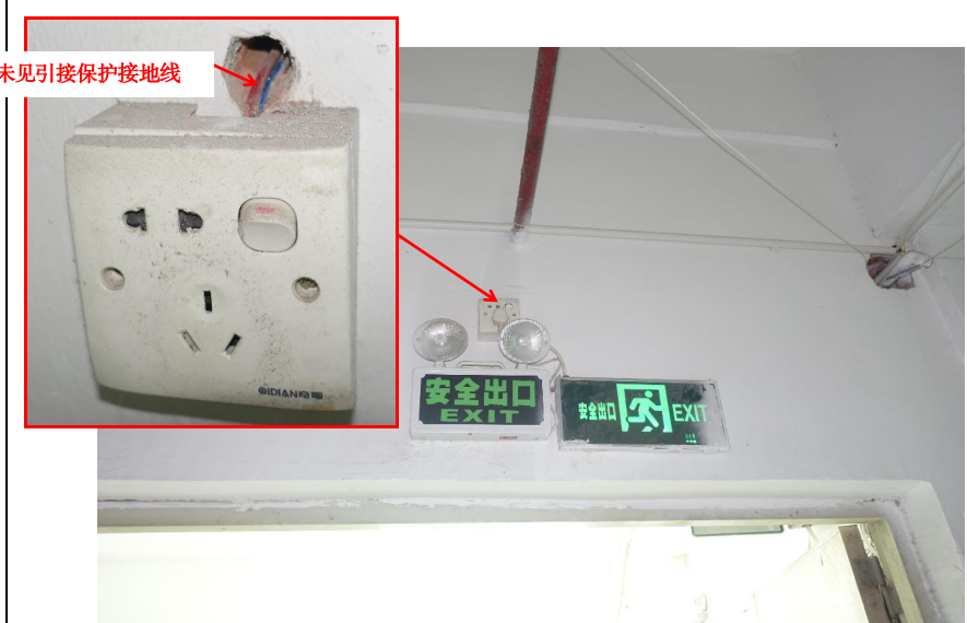 图7 通电测得破损部位裸露金属导体带AC 220V危险电压 1. 应急灯电源插座处未引接保护接地线、未设置漏电保护装置,同时涉事线路未采取防止机械损伤的措施,不符合用电安全规范要求。 2. 郭贞水提供的铝制人字梯不符合安全规范,涉事梯子未见有金属撑杆或锁定装置,梯脚的塑料防滑套已破损。 3. 周小光安全意识淡薄,作业时未佩戴安全帽等安全防护用品,违规骑在铝制人字梯上横向挪动,未注意梯脚下方的涉事线路并压破线路绝缘层,导致触电后从人字梯上摔下受伤。 (1)电梯间的应急灯电源插座供电线路只有单相两线,未见引接保护接地线,测得该电源插座在泄漏电流>33.0mA的情况下仍未见自动保护切断电源,说明电梯间的应急灯电源插座没有采用二级漏电保护系统,另外排插的插头为单相两极扁插,不带保护接地极,不满足JGJ 46-2005《施工现场临时用电安全技术规范》第1.0.3条规定。 (2)事发时涉事人员未佩戴安全帽,且在金属人字梯上挪动梯子,不满足JGJ 184-2009《建筑施工作业劳动保护用品配备及使用标准》第2.0.4条规定:进入施工现场人员必须佩戴安全帽;也不满足GB 12142-2007《便携式金属梯安全要求》第8.2.12条规定:当有人在梯子上时,不应挪动梯子进行重新定位。人字梯的4个梯脚的末端的金属型材端面已产生卷曲,塑料防滑脚套(已破损)失去应有的作用,不满足GB 12142-2007《便携式金属梯安全要求》第6.9条规定:梯脚应采用防滑材料制造。 (3)涉事线路凌乱放置在梯脚附近,未见采取防机械损伤的措施,不满足JGJ 46-2005《施工现场临时用电安全技术规范》第7.2.10条规定。把黄色排插的插头复原插在电梯间的应急灯电源插座处,事故现场的2盏照明灯均亮启,测得涉事线路的黄色电线破损部位裸露的金属导体带AC 220V危险电压。 结论:涉事线路未采取防止机械损伤的措施,事故现场的临时用电未采用二级漏电保护系统。事发时,未佩戴安全帽的涉事人员站在防滑套破损的金属人字梯上挪动梯子,梯脚压破涉事线路的黄色电线绝缘层,金属梯脚与涉事线路黄色电线带AC 220V危险电压的内部导体发生碰触,涉事人员的肢体同时碰触到金属人字梯和上方的金属线槽、金属龙骨、铁丝或金属消防水管,电流经金属人字梯、涉事人员及上方的金属部件形成回路,导致工人触电后从人字梯上摔下受伤致死。 2. 广东南天司法鉴定所出具的《司法鉴定意见书》(粤南[2023]病鉴字第31号)鉴定意见:死者周小光符合触电后从高处坠落导致多发性大脑、小脑、脑干挫伤,弥漫性蛛网膜下腔出血,颅骨骨折等严重的颅脑损伤,引起急性脑功能障碍而死亡。 1. 郭贞水雇请工人入场后,未管理施工现场;未向作业工人配发安全劳动保护用品,且提供的人字梯的防滑胶套破损;安排未取得电工证的工人作业。 2. 顺和兴公司未设立安全管理组织;对承租单位的生产工作统一协调、管理不到位,未为涉事房屋配备电源;未安排人员对其物业管理区域定期进行安全检查。 根据事故调查情况,调查组对事故单位和有关人员的责任认定和追究提出如下意见: 周小光安全意识淡薄,作业时未佩戴安全帽冒险骑在铝制人字梯上横向挪动,未注意梯脚压破涉事线路的绝缘层,导致其触电后从人字梯上摔落受伤,直接导致事故的发生,对本起事故负直接责任,鉴于其已死亡,建议免予追究其责任。 1. 电工王官朝在未取得电工证的情况下进行电工作业,其未按照安全规范要求临时接电,未在应急灯电源插座处采用二级漏电保护系统,未对涉事线路采取防止机械损伤的措施,当周小光骑在人字梯上移动时人字梯踢脚压破涉事线路的绝缘层,导致周小光触电后从人字梯上摔落受伤致死,应对本起事故负有直接责任。王官朝的行为涉嫌触犯《中华人民共和国刑法》第一百三十四条规定的重大责任事故罪,建议由深圳市公安局宝安分局依法对其进行处理。 2. 郭贞水未核实王官朝是否取得电工证便安排其从事电工作业[[[] 《中华人民共和国安全生产法》第三十条第一款:生产经营单位的特种作业人员必须按照国家有关规定经专门的安全作业培训,取得相应资格,方可上岗作业。 《特种作业人员安全技术培训考核管理规定》第五条:特种作业人员必须经专门的安全技术培训并考核合格,取得《中华人民共和国特种作业操作证》后,方可上岗作业。附件:特种作业目录1.电工作业:指对电气设备进行运行、维护、安装、检修、改造、施工、调试等作业(不含电力系统进网作业)。]],且提供的铝制人字梯不符合安全规范;未对施工现场进行安全监管,应对本起事故负有直接管理责任。郭贞水的行为涉嫌触犯《中华人民共和国刑法》第一百三十四条规定的重大责任事故罪,建议由深圳市公安局宝安分局依法对其进行处理。 顺和兴公司未设立安全管理组织;对承租单位的生产工作统一协调、管理不到位,未为涉事房屋配备电源;未安排人员对其物业管理区域定期进行安全检查。其行为违反了《中华人民共和国安全生产法》第四十九条第二款[[[] 《中华人民共和国安全生产法》第四十九条 第二款:生产经营项目、场所发包或者出租给其他单位的,生产经营单位应与承包单位、承租单位签订专门的安全生产管理协议,或者在承包合同、租赁合同中约定各自的安全生产管理职责;生产经营单位对承包单位、承租单位的安全生产工作统一协调、管理,定