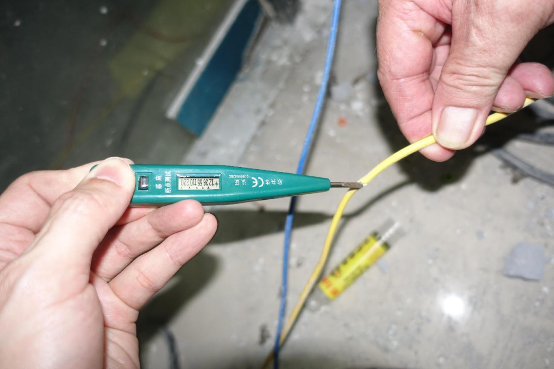 图6 模拟涉事人员站在人字梯上,梯脚压到地面上的电线 事故共造成1人死亡。死者周小光,男,33岁,河南省舞阳县人。根据《企业职工伤亡事故经济损失统计标准》(GB/T6721)事故造成的直接经济损失约人民币80万元。 事故发生后,朱春峰第一时间将周小光身上的人字梯拉开并进行心肺复苏急救,同在现场的刘光元则拨打了120急救电话,同时通知王官朝、郭贞水到902室支援,王官朝、郭贞水负责赶往一楼等待120急救人员。约十几分钟后医护人员赶到事故现场,将周小光送至恒生医院经抢救无效死亡。 接报事故后,西乡街道办事处、共乐派出所等相关职能部门有关人员立即赶赴事故现场核实现场情况,开展应急处置,并按时将该起事故上报。区应急管理局接报后,立即组织人员赶赴现场,对事故开展调查处理。 西乡街道办积极组织协调善后工作。顺和兴公司与周小光家属达成了赔偿协议,善后赔付当事人家属80万元。 该起事故应急处置中,信息报送及时、应急响应迅速,响应程序正确,未出现政府相关部门(单位)和工作人员失职、渎职情况。 通过对事故现场进行勘查、对人员进行询问、委托第三方检测机构检测,认定事故直接原因是:涉事线路未采取防止机械损伤的措施[[[] JGJ 46-2005《施工现场临时用电安全技术规范》第7.2.10条规定:电源线可沿墙角、地面敷设,但应采取防机械损伤和电火措施。]],事故现场的临时用电未采用二级漏电保护系统[[[] JGJ 46-2005《施工现场临时用电安全技术规范》第1.0.3条规定:建筑施工现场临时用电工程专用的电源中性点直接接地的220/380V三相四线制低压电力系统,必须符合下列规定:1、采用三级配电系统;2、采用TN-S接零保护系统;3、采用二级漏电保护系统。]];事发时,涉事工人未佩戴安全帽站在防滑套破损的金属人字梯上挪动梯子,梯脚压破带危险电压(AC 220V危险电压,见图7)的黄色电线绝缘层,金属梯脚与线路的内部导体发生碰触,涉事工人的肢体同时碰触到金属人字梯和上方的金属部件形成回路,导致工人触电后从人字梯上摔下受伤致死。