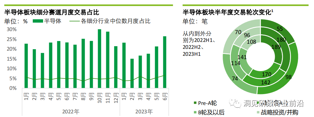 从交易量看,半导体板块在TMT领域的投资占比保持平稳。同样的,资本对于中后期项目倾向性提升。