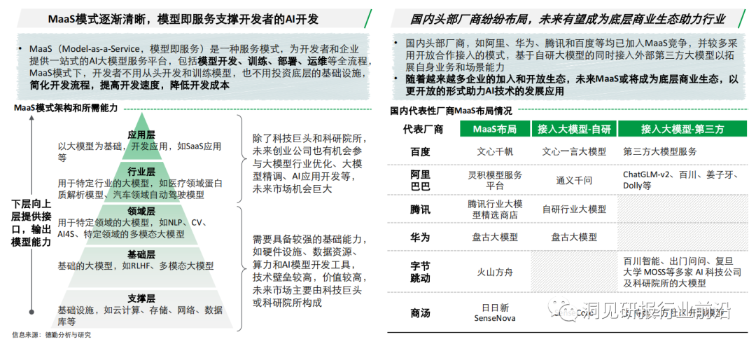 MaaS的订阅式服务为开发者提供了底层算法模型能力,简化了算法开发,随着头部科技企业的快速布局和行业生态的发展,未来MaaS有望将成为新AI时代的底层商业生态,推动AI技术的发展应用。