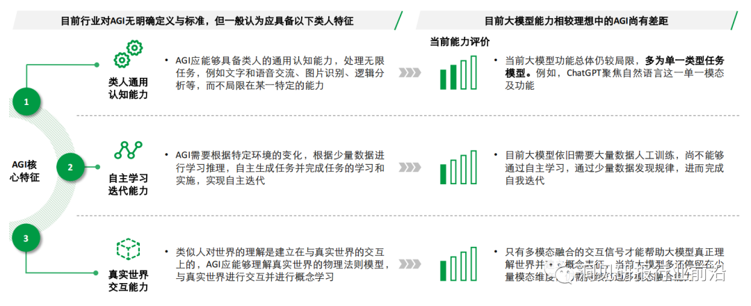 AI大模型发展的终局是通用人工智能AGI,虽然大模型的发展已经迈出了坚实的一步,但距离终局目标尚有差距,需要业界的持续探索。