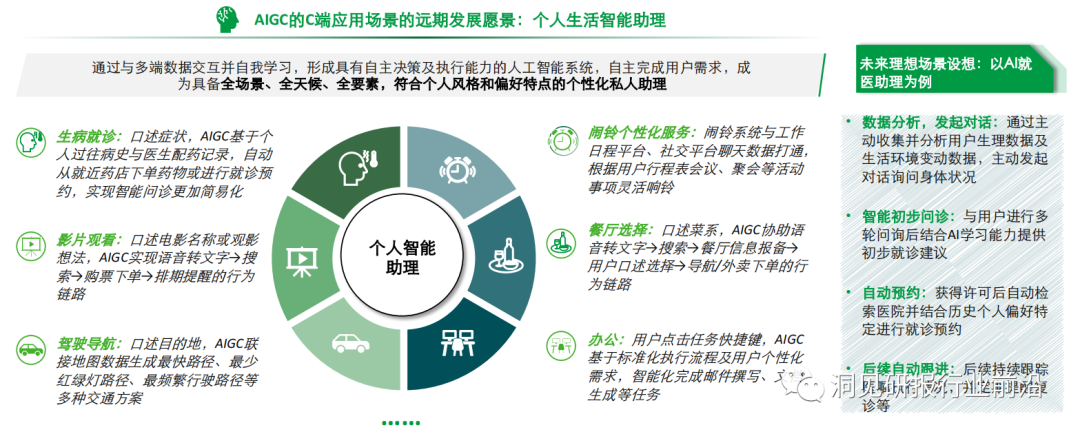 随着AI大模型的不断成熟、AIGC功能的不断完善和丰富,AIGC未来在C端应用的远期愿景有望成为不受场景限制,能够覆盖衣食住行全场景、全天候、全要素,且懂用户、理解用户的个人智能助理。