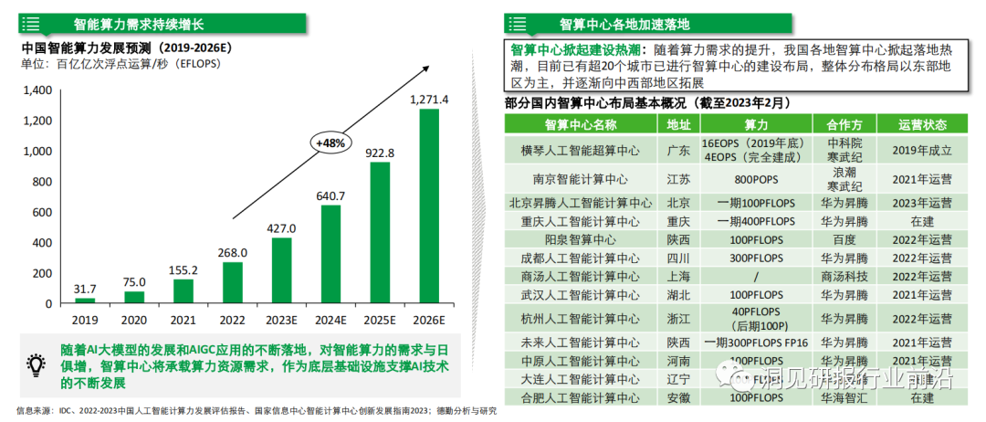 AI大模型的发展和AIGC应用的不断落地,将驱动智能算力需求迅速增长。智算中心作为主要承载载体也在各地掀起了新基建的建设浪潮。