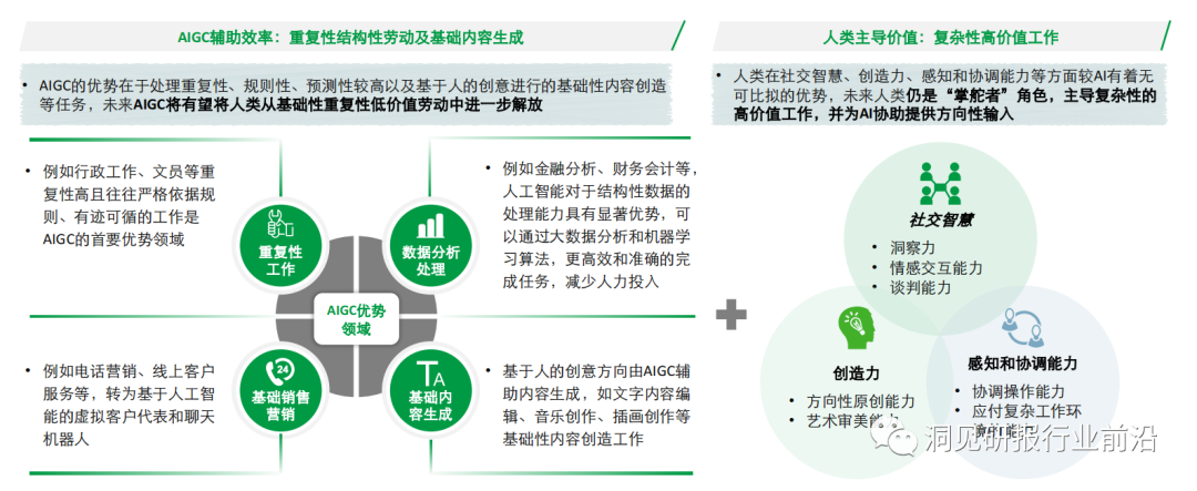 随着AIGC的发展,未来商业世界将形成工作新范式—人类作为“掌舵者”主导复杂性高价值工作,辅以AIGC提升重复性和基础性工作效率,人机协作新范式将成为企业和员工的必修课。