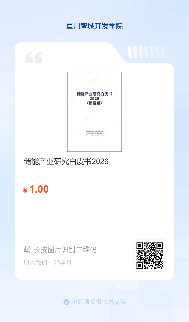 扫描海报二维码,获取完整版《储能产业研究白皮书 2026》,把握储能产业高质量发展先机。