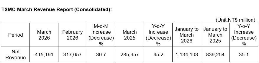 台积电刚公布了一季度的营收数据,不是完整财报,是提前披露核心营收,但这组数据已经足够炸裂。