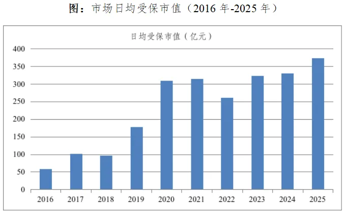 2025年全年,上交所股票期权合约累计成交12.75亿张,日均成交524.70万张,日均持仓640.81万张,日均成交面值1936.57亿元,日均权利金成交30.14亿元。市场日均受保市值为373.02亿元,同比增长12.84%,单日受保市值最高达到593.98亿元。