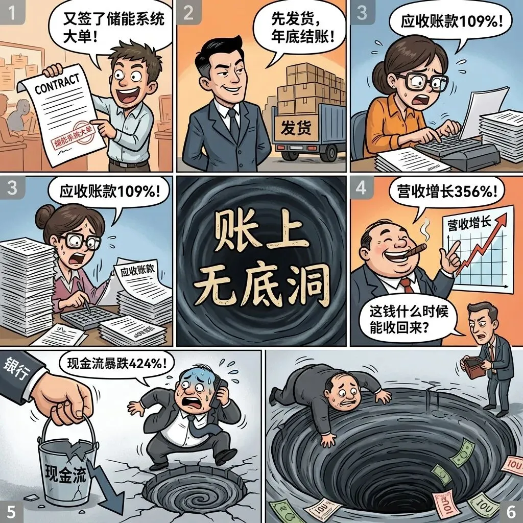解读: 应收账款是营收的109%,钱收不回来风险巨大,现金流每股-0.93元暴跌424%!
