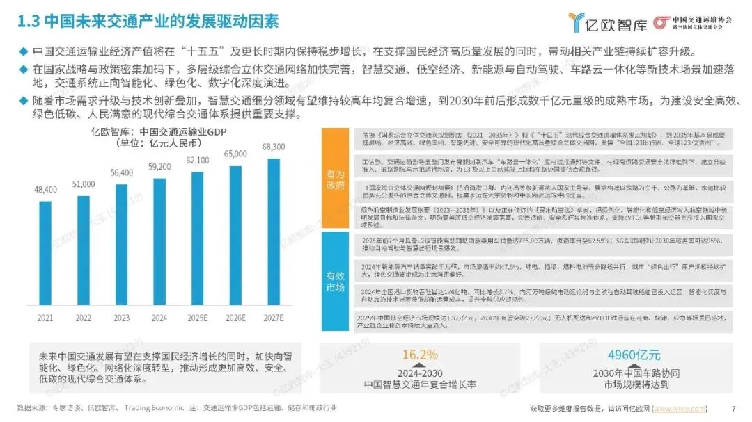 中国未来交通沿着“Al驱动、能源重构、生态融合”三条主线加速演进,发展逻辑由单纯装备升级、场景联通,走向整体交通系统的重构,实现跨场景、高效率、低碳化的跃迁。