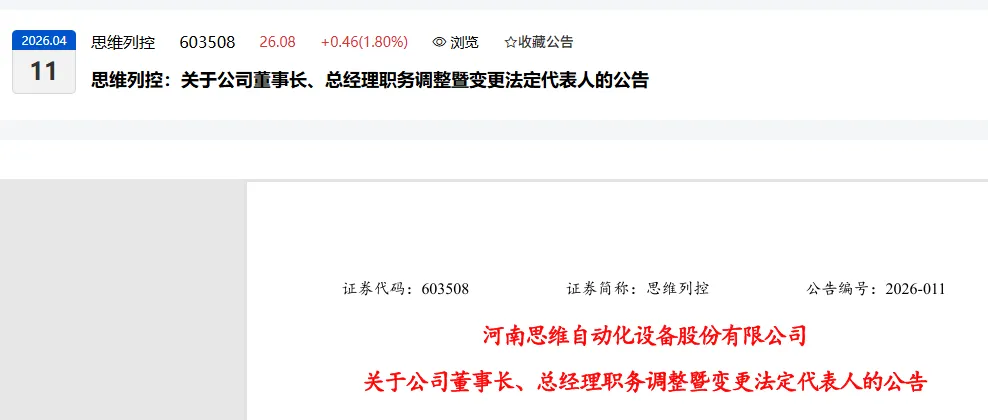 2. 2026年4月发生了什么重大人事变动?