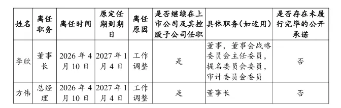 2026年4月10日后:李欣退休(还挂名董事),方伟升任董事长,裴显杨(46岁)当总经理。