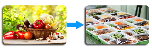 食材经过预处理、加工、调配、包装、保鲜贮存等工艺生产后,配送到餐馆、酒店、餐饮酒家、单位食堂后续需求单位等,也可以配送到各连锁经营店进行二次加热或者进行组合后销售给顾客。