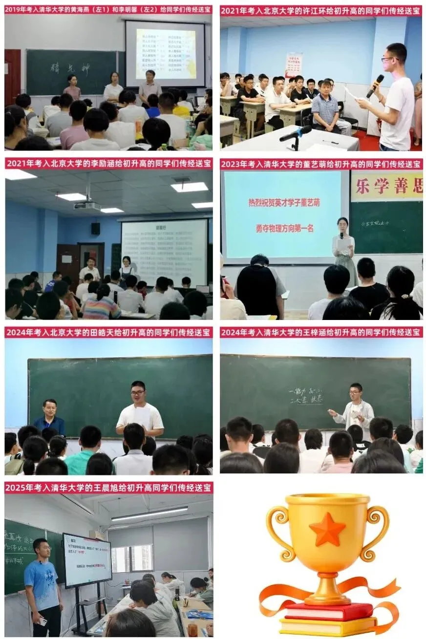 为了让同学们从身边优秀的榜样身上汲取力量,我校每年特邀考入清华、北大的英才学子返校,为初升高同学分享实用学习经验、高效备考方法与成长心得,助力同学们稳步衔接,打好基础。