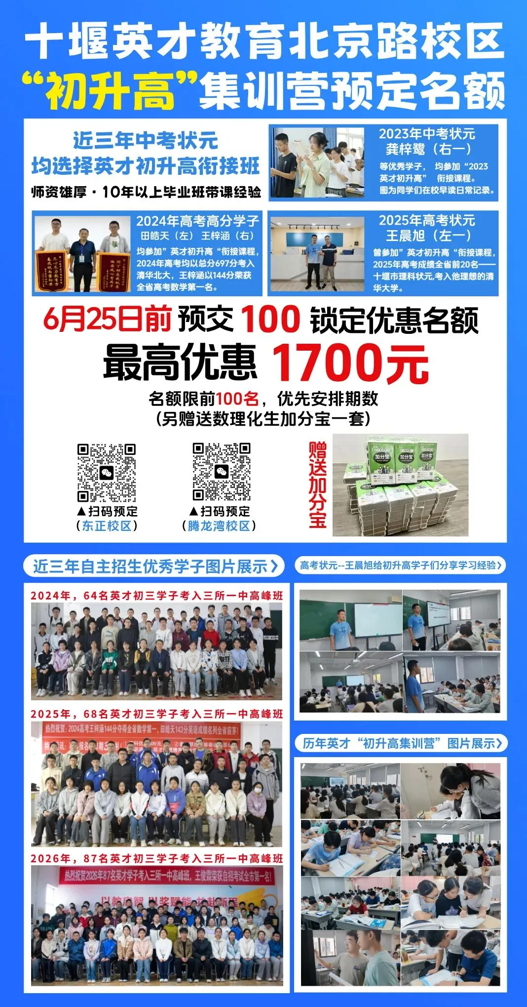 为助力更多学子顺利度过初升高衔接期,英才教育现推出 “初升高集训营预定名额”:
