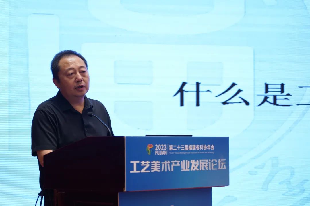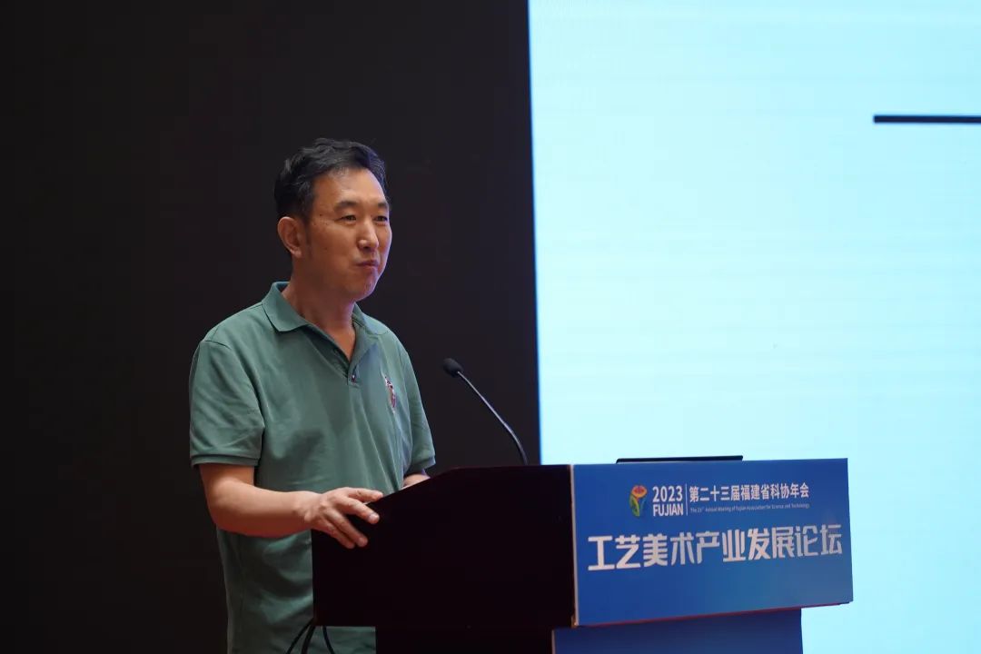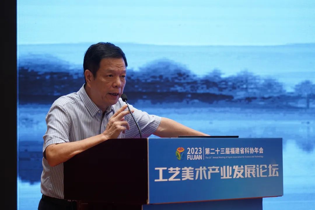 杨江帆副主席在致辞中表示,省科协历来高度重视支持全省工艺美术事业发展,积极推动工艺美术资源下沉,促进科技经济融合与服务地方创新驱动发展。省工艺美术学会积极携手全国的工艺美术大师、专家学者,团结全省的工艺美术从业者,聚焦新福建建设,不断增加学会组织凝聚力、学术引领力、社会公信力,为工艺美术事业增添新动力;从事工艺美术行业的每一位从业者要坚持守正创新,大力弘扬工匠精神,把优秀的民族传统文化主动融入新时代发展大局,充分发挥工业美术产业发展论坛的作用,在继承好传统艺术上寻找新突破、在大力提高创新意识上寻找新方向、在不断磨练自身上寻找新目标、在把握时代脉搏上勇攀新高峰,在引领工艺美术产业发展上增添新动能,为谱写中国式现代化建设的福建篇章作出更大的贡献。