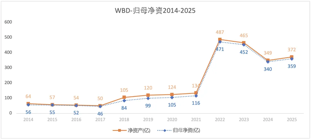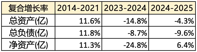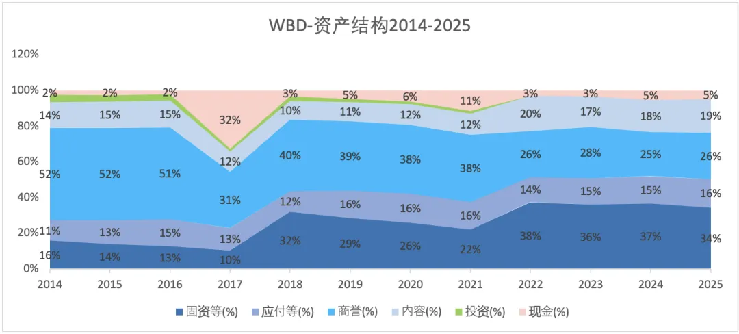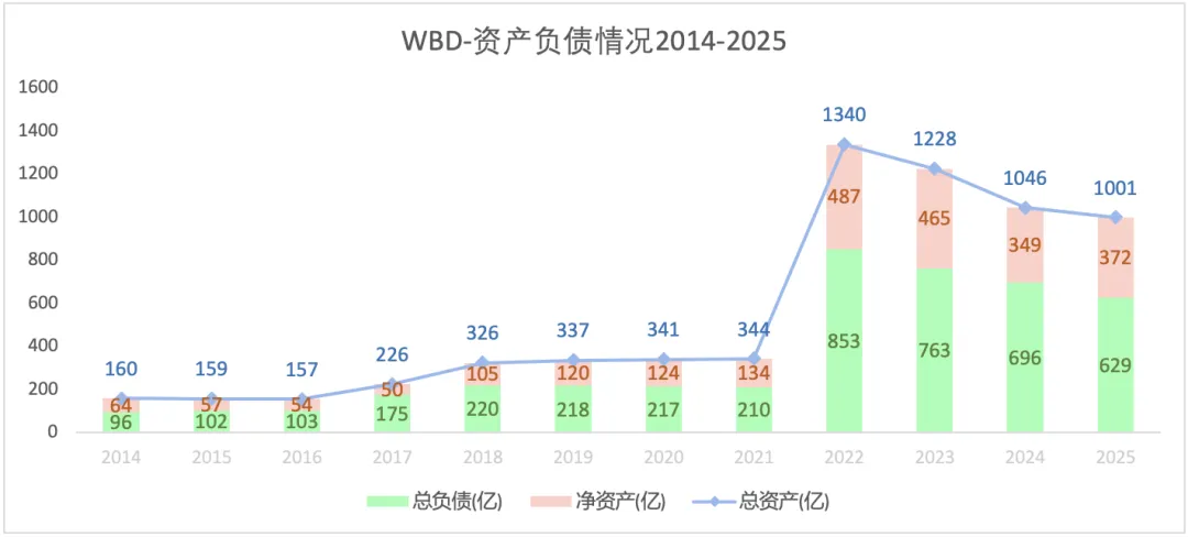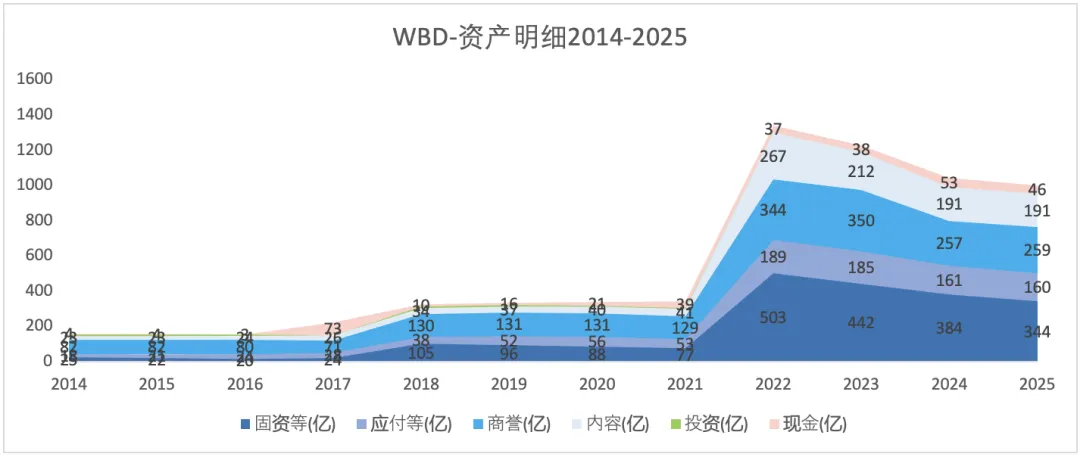 2021年及其之前为探索公司的资产;2022年,探索公司与华纳媒体合并,因而其总资产、总负债和净资产暴增。2022-2025年,总资产不断缩水,一方面是因为负债减少,一方面是因为净资产减少。