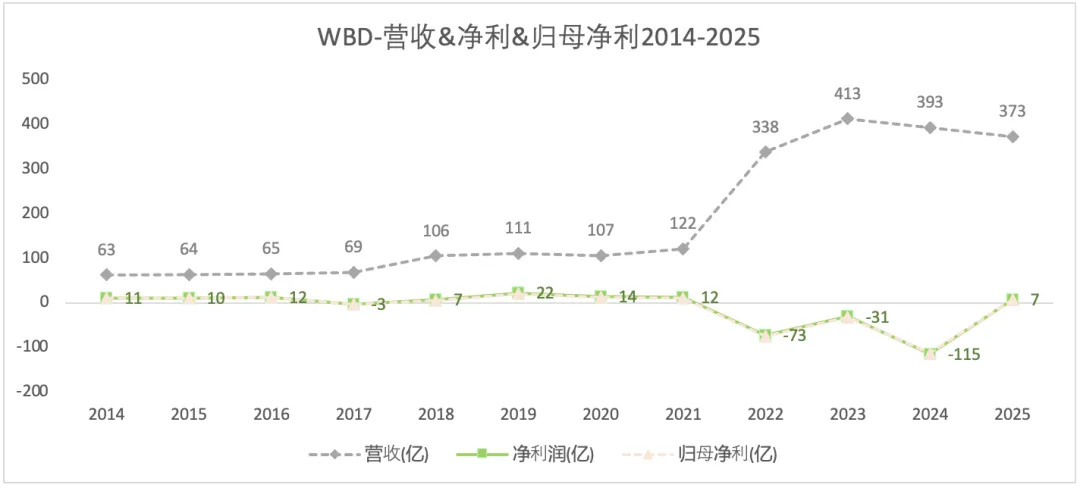 2022-2025年期间,是Discovery与华纳媒体合并后的所有业务,所以营收在2022年由前一年的122亿飙升至328亿,合并之后2023年营收有所增长,但2024年和2025年营收都是下降的。净利润:2022-2024年一直处于亏损,2025年利润扭亏为盈,但仍未达到合并之前的水平,说明公司合并反而恶化了盈利。