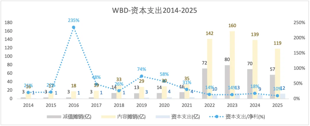 与奈飞一样,WBD的内容摊销很高。