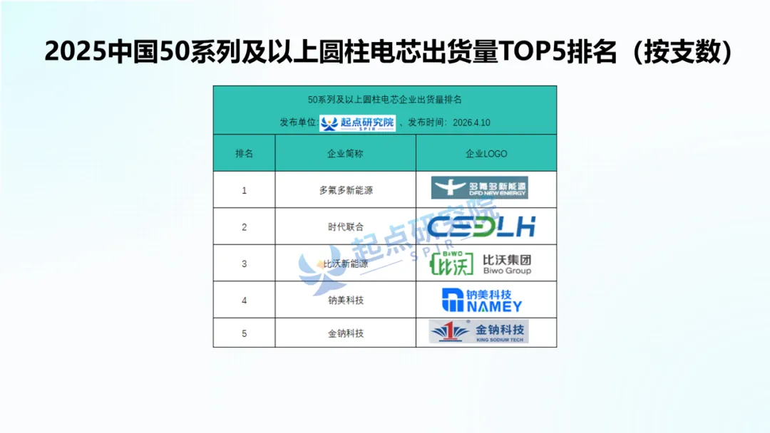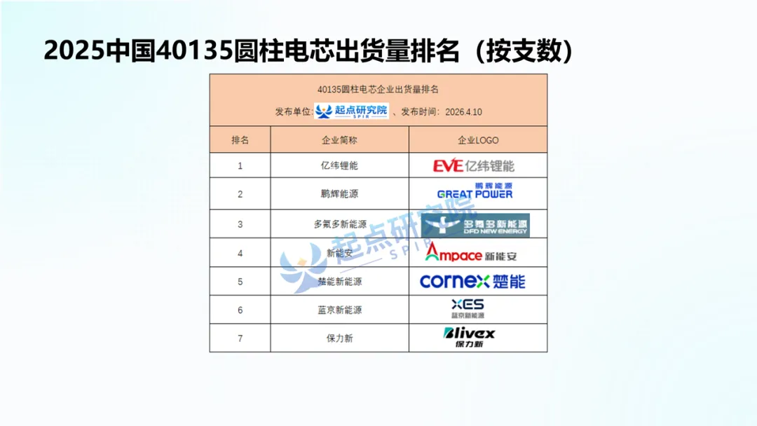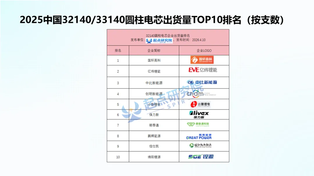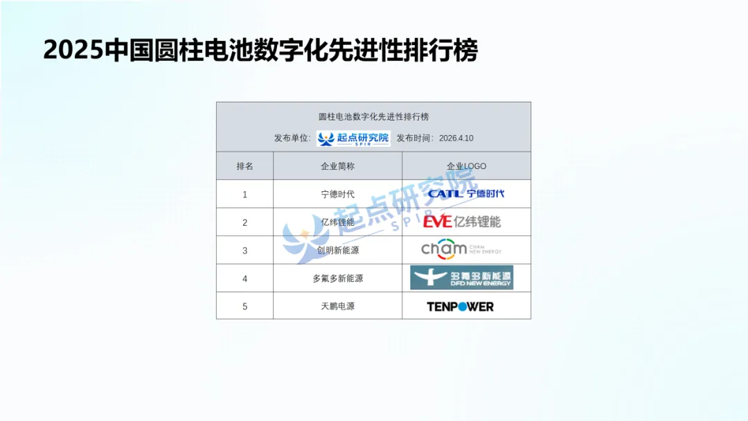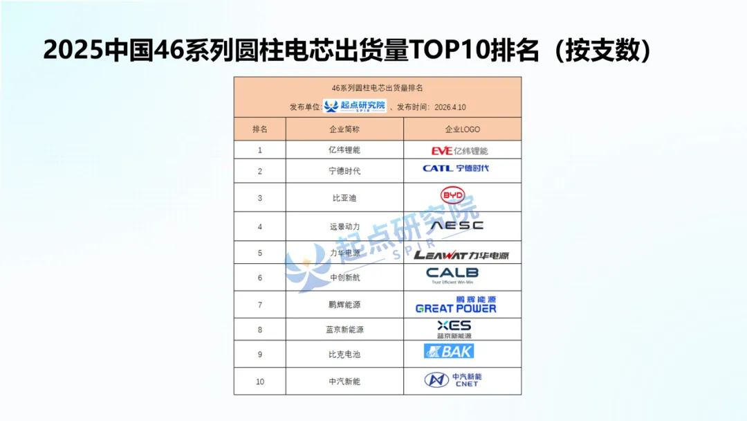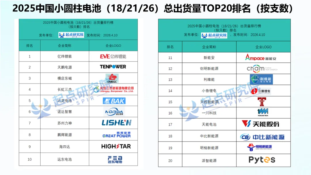 2026年4月10日,2026(第二届)起点圆柱电池技术论坛暨圆柱电池20强排行榜发布会在深圳正式举办,同期起点研究院SPIR联合起点锂电重磅发布《2026中国圆柱电池行业白皮书报告》,以下为具体内容: