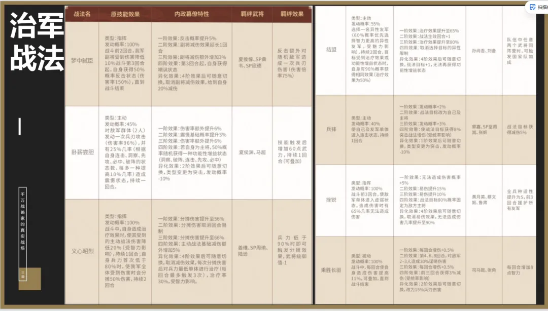 治军战法有2个已经有修订,看最新截图,其他的依然看ppt