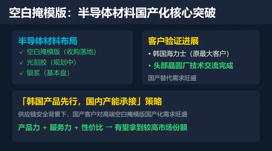 中期:空白掩模版客户验证落地,半导体材料贡献增量