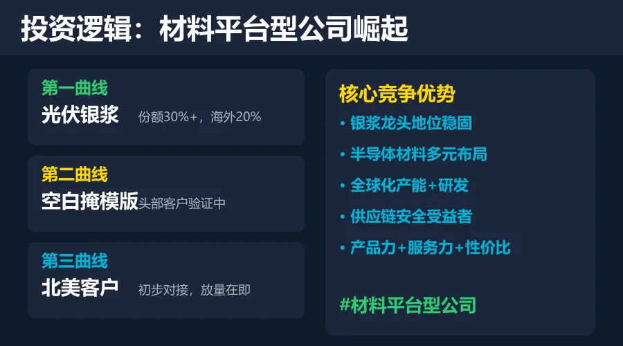 聚和材料正从单一光伏银浆供应商向材料平台型公司转型: