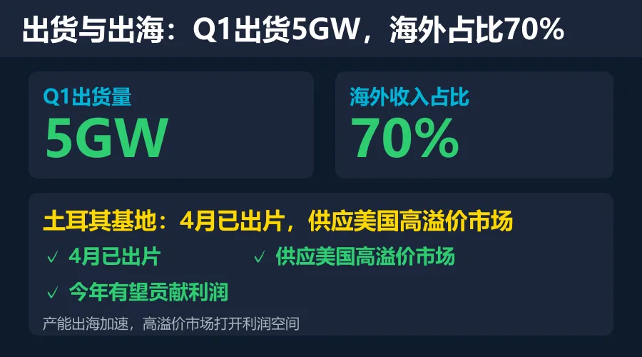 二、? 出海加速:Q1出货5GW,海外占比70%