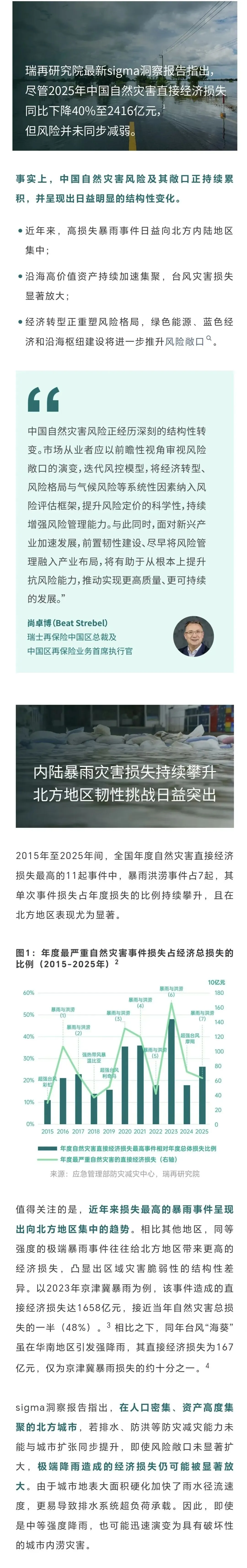 1. 应急管理部 2025 年统计数据.官方文件表述为“洪涝和地质灾害”,本文简化为“暴雨与洪涝”。本文中所有国家级自然灾害直接经济损失数据均来自应急管理部。