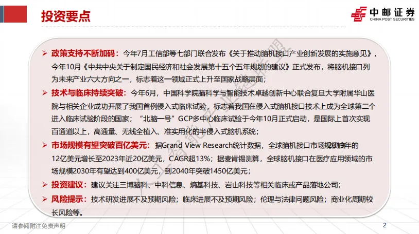 中邮证券: 《脑机接口行业深度报告:脑科学产业与政策趋势共振》 (完整版.pdf ) 以下仅展示部分内容 下载方式见文末