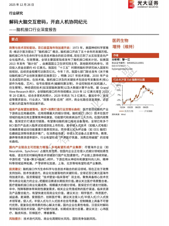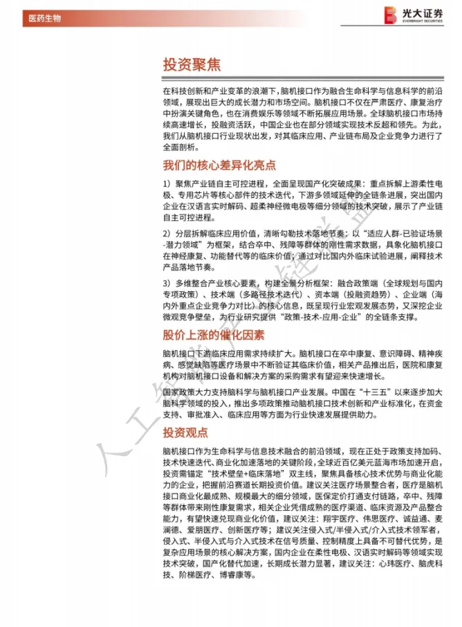 光大证券: 《脑机接口行业深度报告:解码大脑交互密码,开启人机协同纪元》 (完整版.pdf ) 以下仅展示部分内容 下载方式见文末