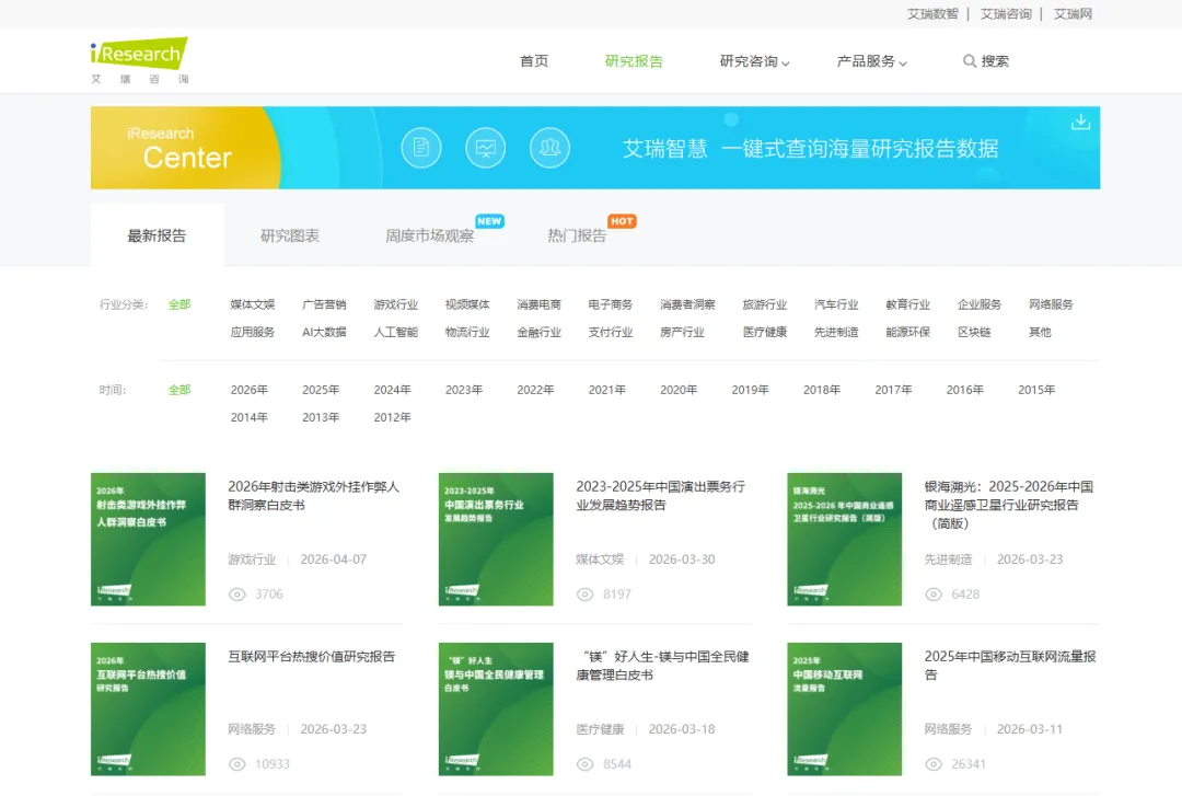 iiMedia Research(艾媒咨询)是全球领先的新经济产业第三方数据挖掘和分析机构,每年公开或者定制发布基于大数据的行业研究报告_市场调研报告超2000份,覆盖房地产、IT互联网、金融、人工智能、新零售、游戏、音乐、教育、VR、网络安全等领域。