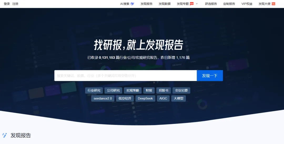 适合:批量找报告、快速检索、跨行业搜集,部分免费+积分/会员制