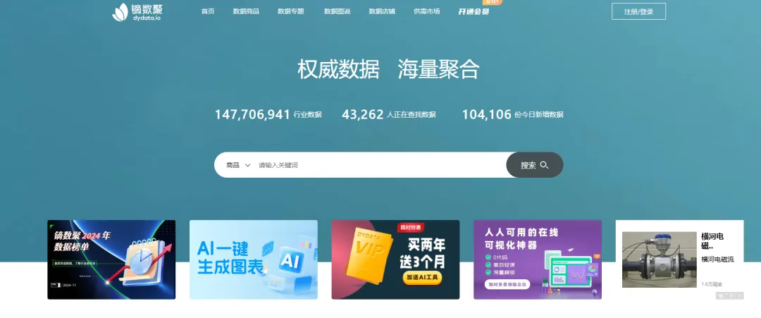 数据+报告双库,100+行业,支持可视化与交叉查询。