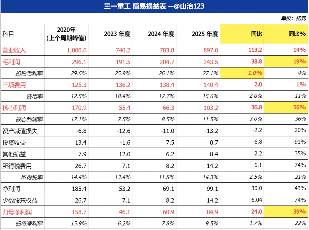 归纳法的角度,三一的行业景气度、财务表现和市场估值呈现强相关性。