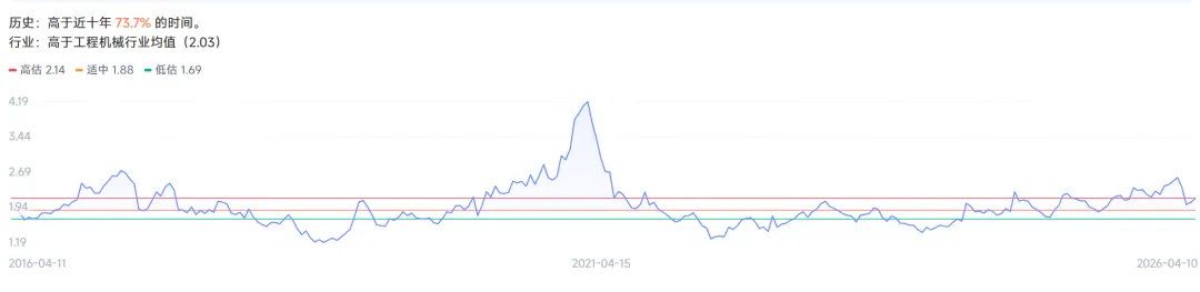 过去十年,三一重工的市销率多数在1.6-2.2倍波动