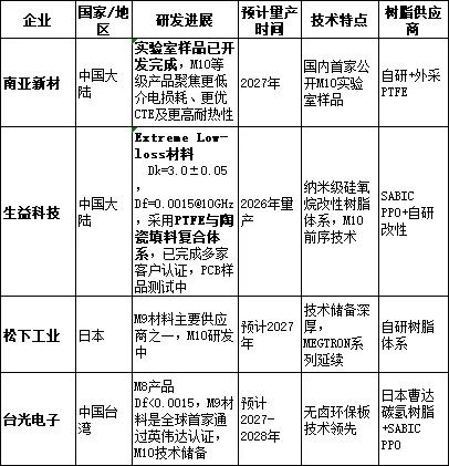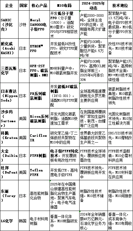 三、全球覆铜板树脂供应商格局(含M10布局)