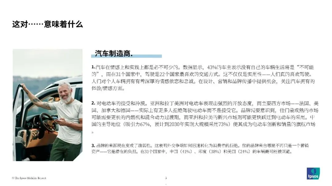 对车企:汽车仍具情感价值,欧美需保留燃油 / 混动过渡期,亚洲、拉美可加速电动化;需重视数据安全与品牌国别风险。